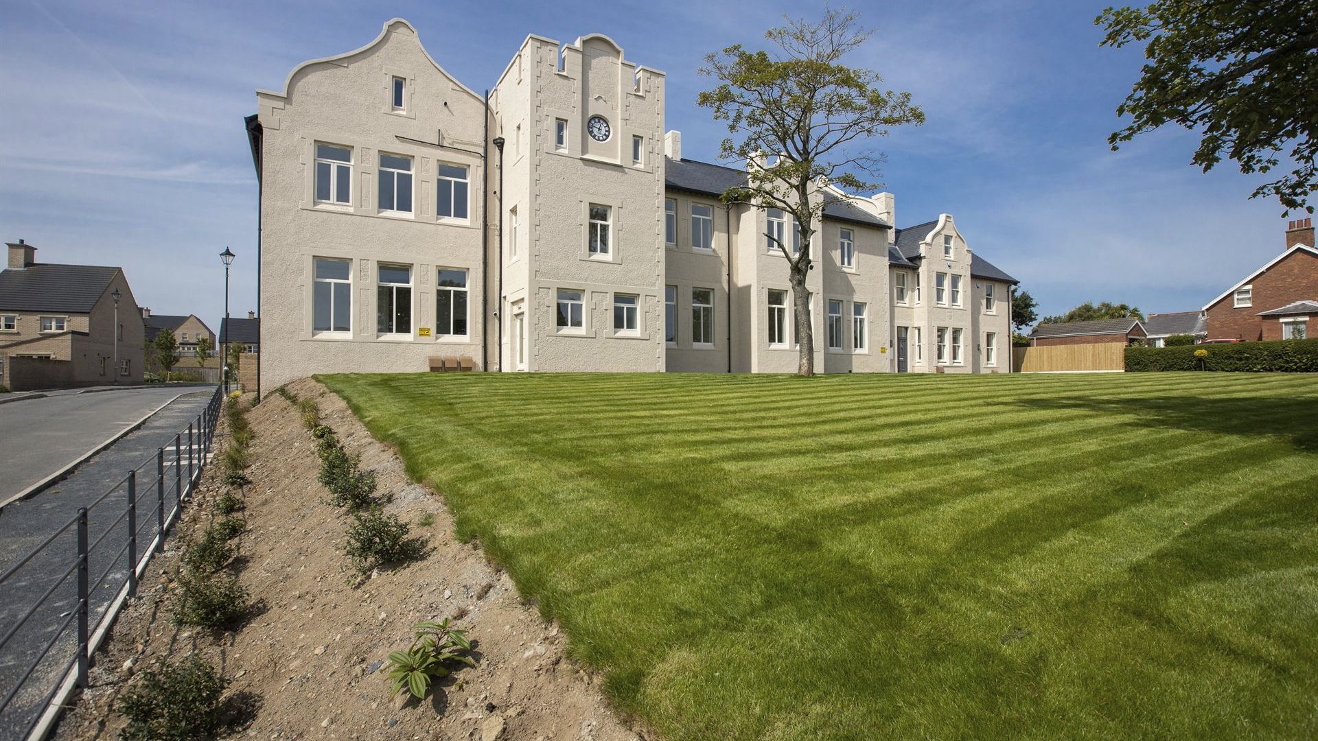 Gas central heating Timber double glazed windows with exception of Apt no 2 which is grey aluminium windows Painted white woodwork details and ceilings White painted doors, architraves and skirtings Comprehensive range of white electrical sockets including USB points, switches, and phone points Fitted security alarm BT Open Reach All apartments fitted with communal satellite dish and tv aerial, townhouses wired for same Smoke and carbon monoxide detectors Lift in Apartment block Communal hallway with original reclaimed and restored terrazzo flooring from original Bangor Grammar School Staircase laid in bespoke carpet Original restored staircase, balustrade and spindles from Bangor Grammar School Driveways and parking areas laid in pebbles 10 year Global Home Warranty All gardens and communal areas laid in lawns with soft landscaping Black estate fencing to communal garden Building fitted with exact replica of original Bangor Grammar Clock