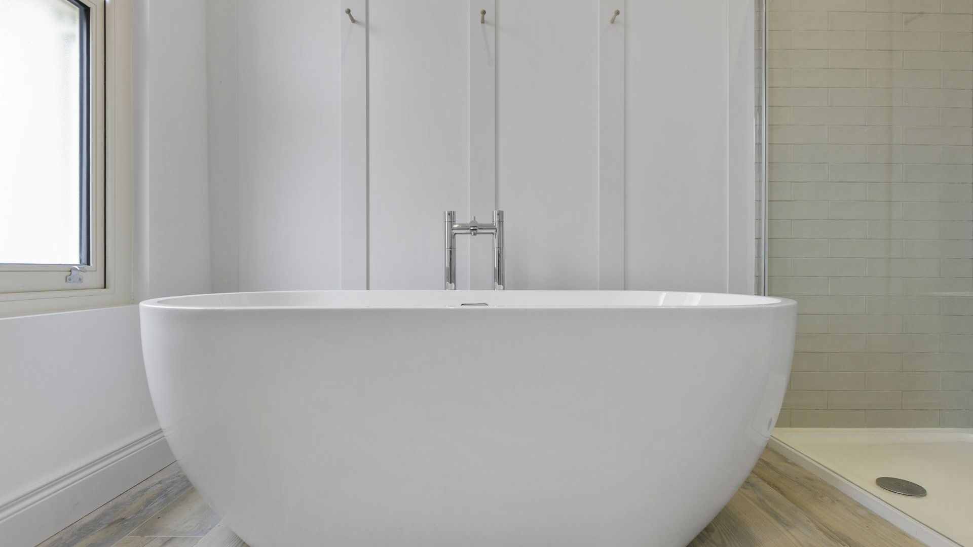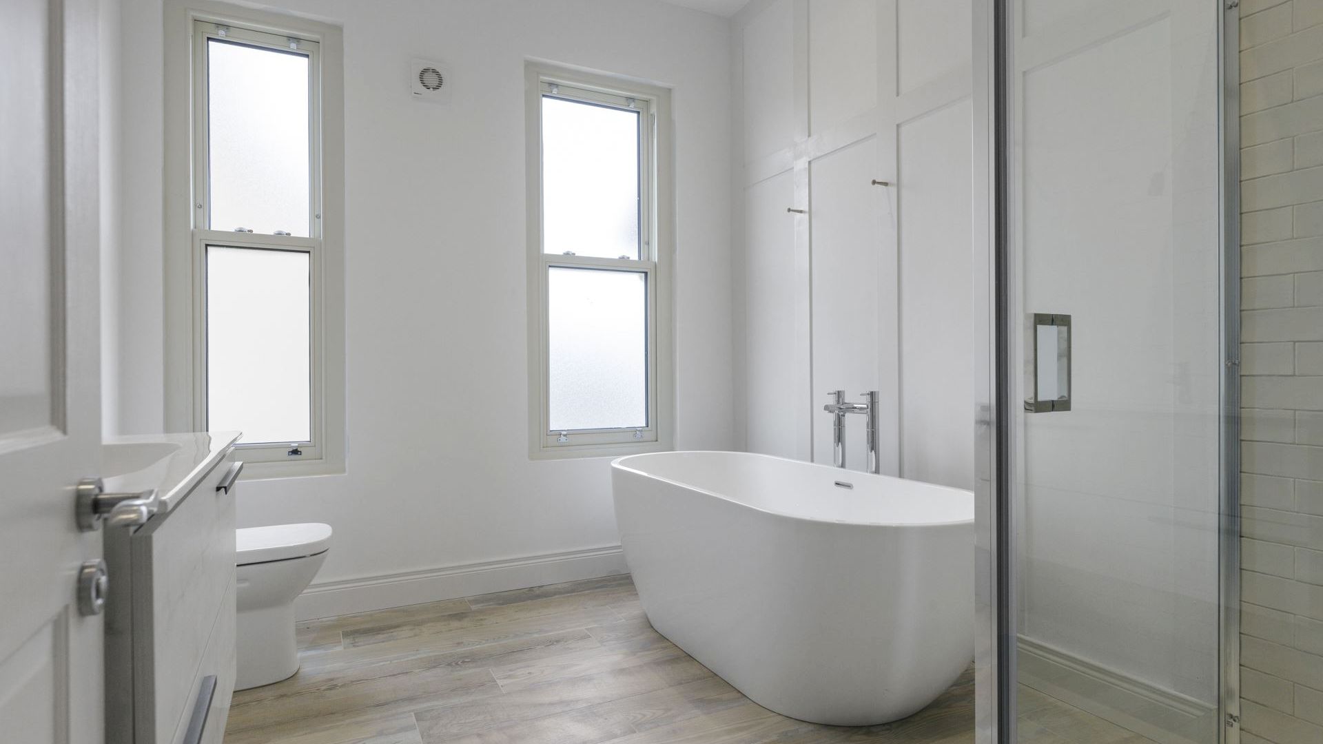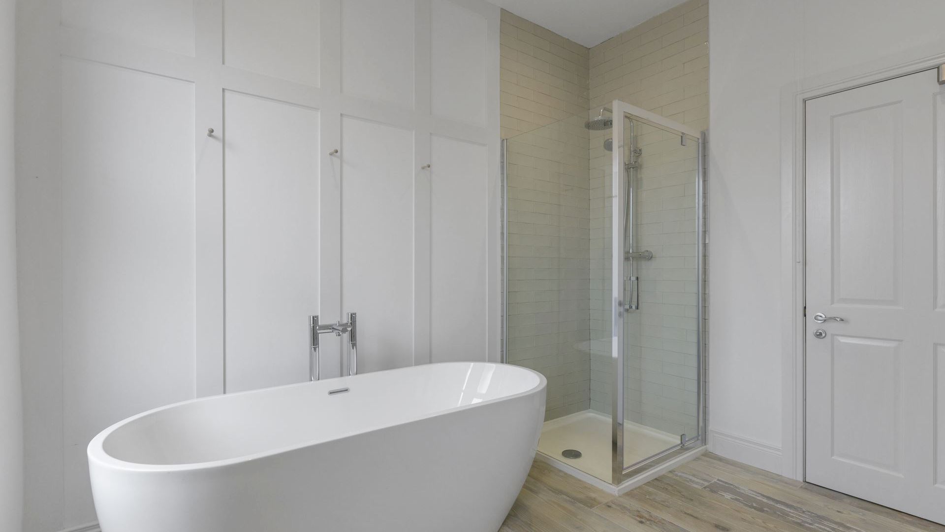 Luxury white fitted bathroom ranges with free standing baths and various high quality furniture and fittings