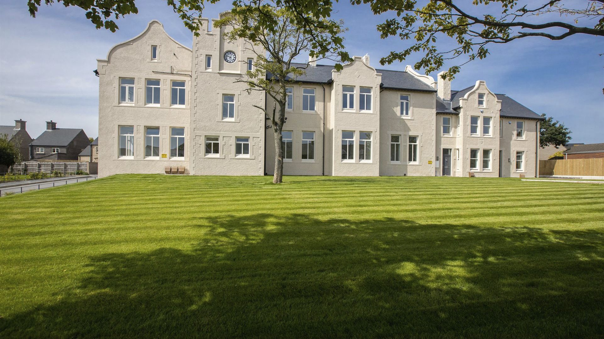 Gas central heating Timber double glazed windows with exception of Apt no 2 which is grey aluminium windows Painted white woodwork details and ceilings White painted doors, architraves and skirtings Comprehensive range of white electrical sockets including USB points, switches, and phone points Fitted security alarm BT Open Reach All apartments fitted with communal satellite dish and tv aerial, townhouses wired for same Smoke and carbon monoxide detectors Lift in Apartment block Communal hallway with original reclaimed and restored terrazzo flooring from original Bangor Grammar School Staircase laid in bespoke carpet Original restored staircase, balustrade and spindles from Bangor Grammar School Driveways and parking areas laid in pebbles 10 year Global Home Warranty All gardens and communal areas laid in lawns with soft landscaping Black estate fencing to communal garden Building fitted with exact replica of original Bangor Grammar Clock